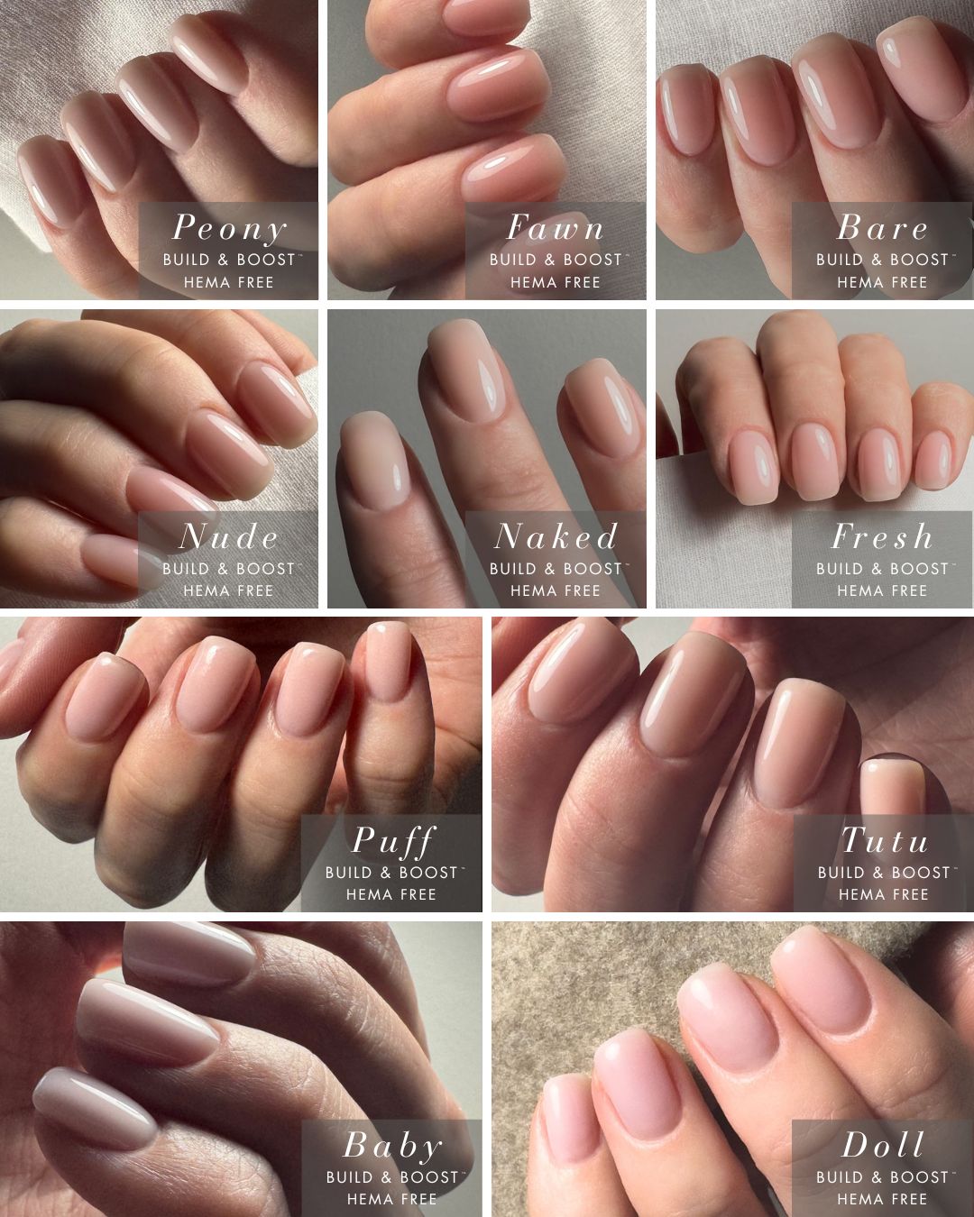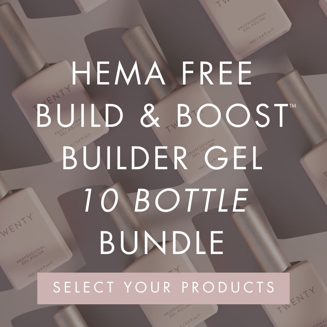 BUILD & BOOST™ HEMA Free – your perfect partner for stunning, durable nails without HEMA or Di-HEMA. Specially crafted for those who adore the consistency and self-levelling properties of our original BUILD & BOOST™ formula, this collection offers a safe and gentle option for sensitive users. Achieve flawless nails while staying true to your needs with this advanced, HEMA-free builder gel.