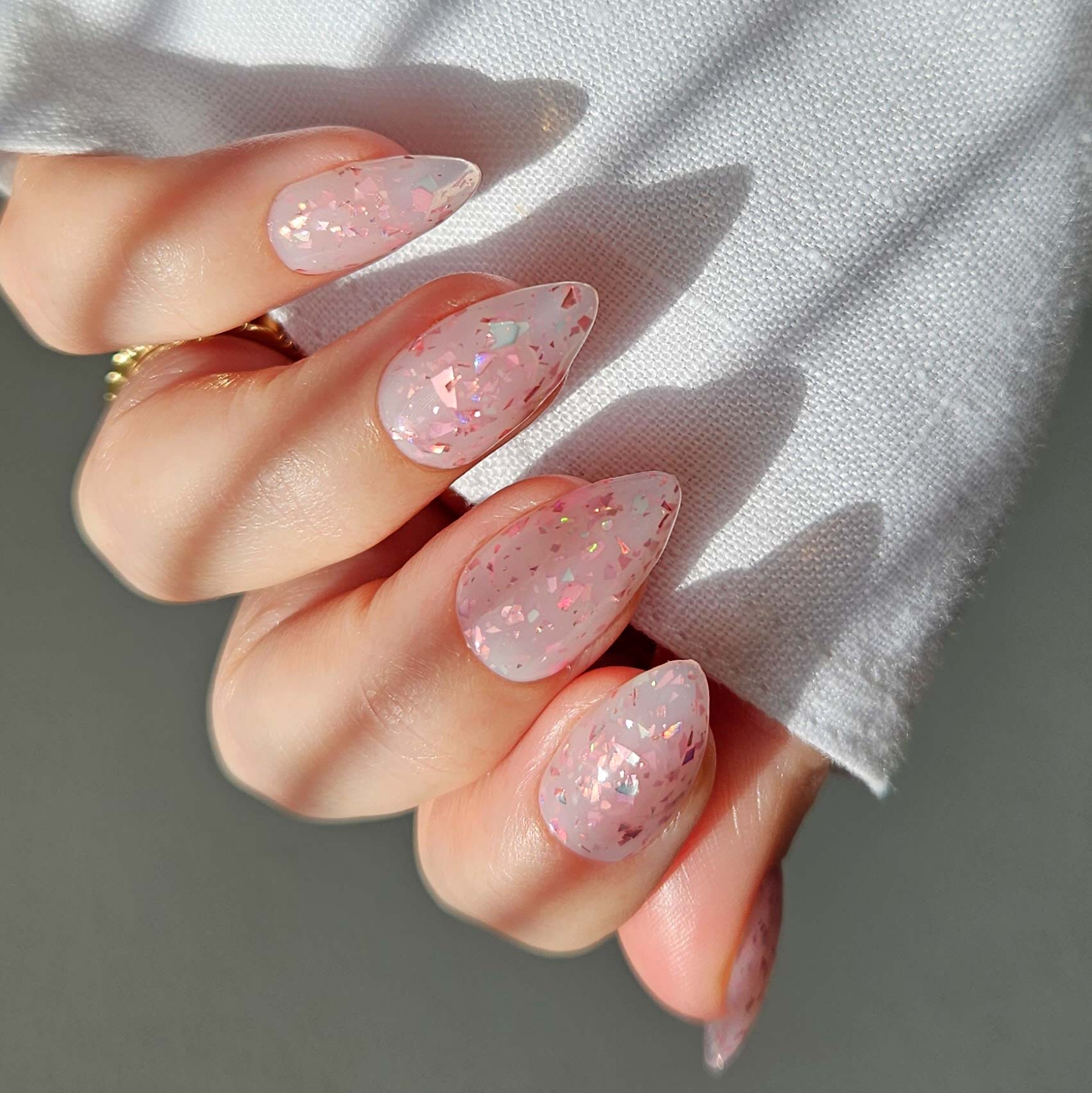 Rose Quartz is a soft pink, sheer base with multifaceted light pink flakes. Beautifully feminine, Rose Quartz is a perfect year round shade for those looking for a touch of glamour every day.