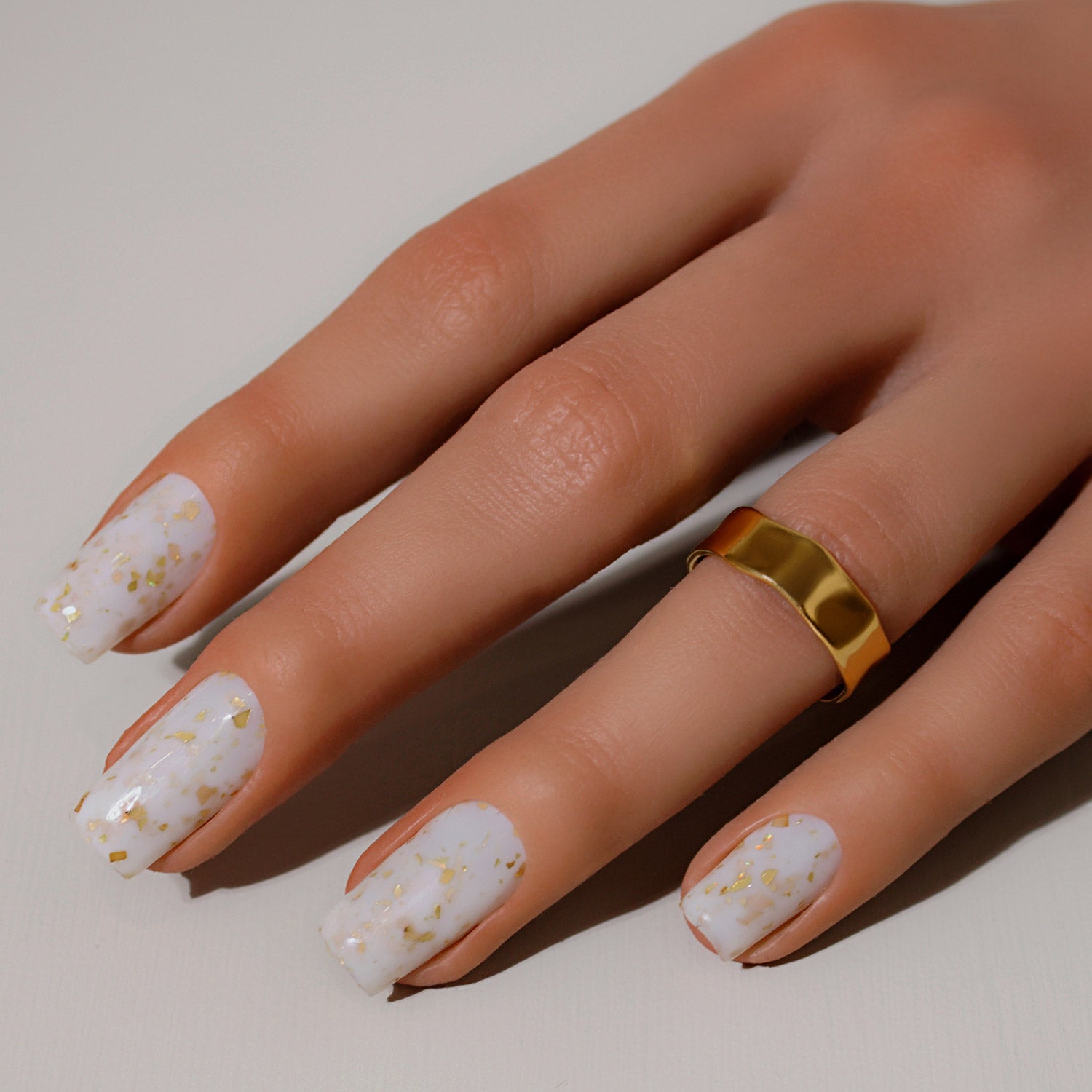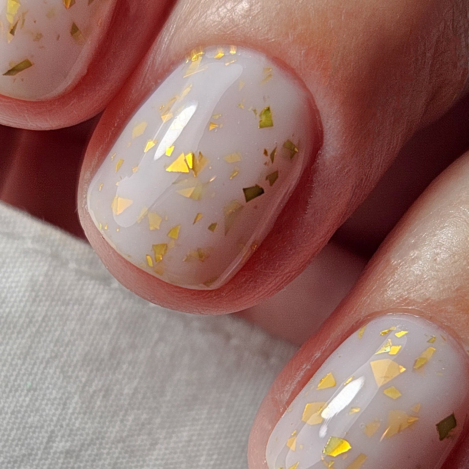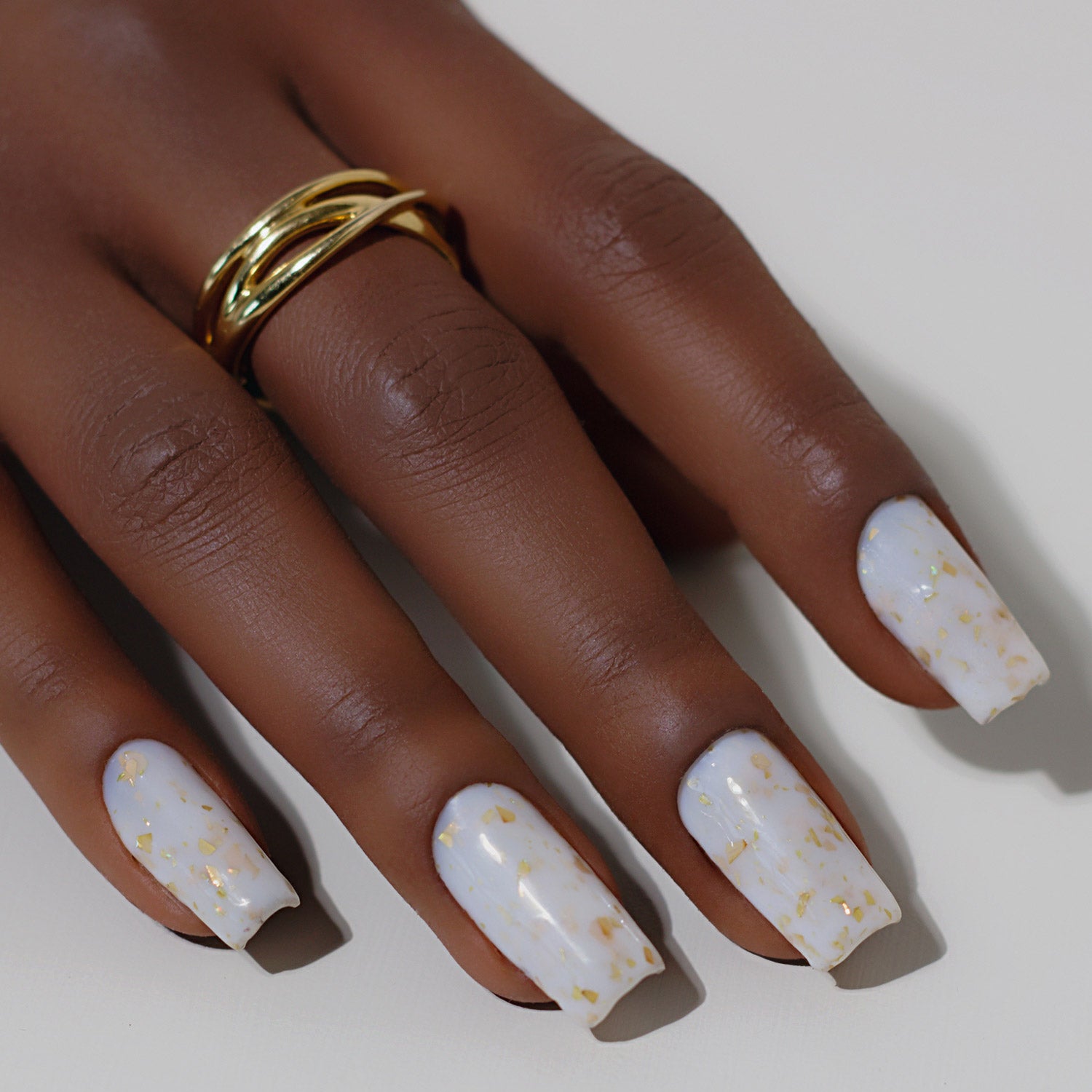 Gilded is a subtle milky white with delicate flecks of gold leaf. Ideal for wedding season be it guest or bridal party, this shade is pure elegance - bottled.