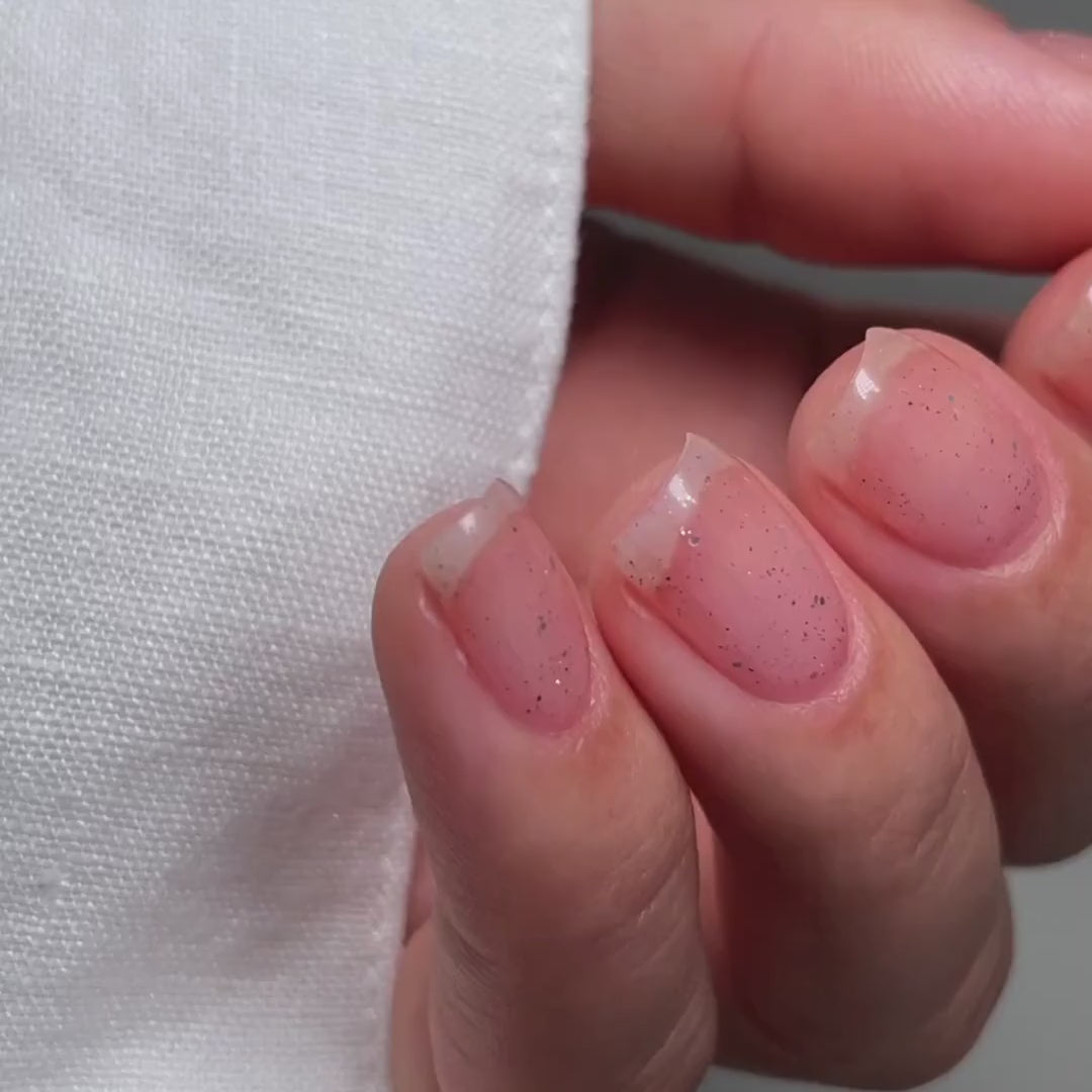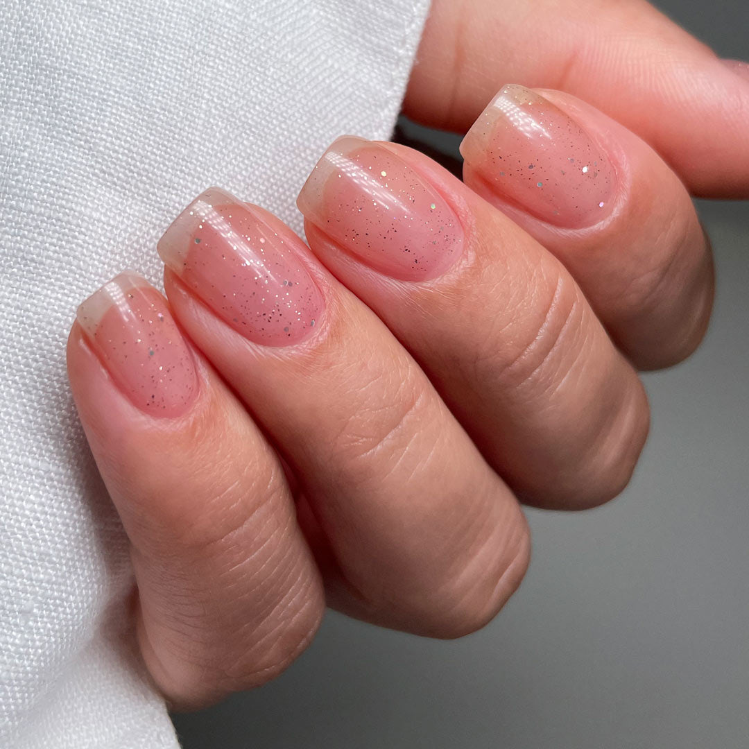 Organza – A rose pink jelly gel infused with delicate silver glitter flecks, adding a touch of elegance and sparkle. This versatile shade can be worn alone for a soft, sheer shimmer or layered over other colours to create a multi-dimensional, luminous manicure. Perfect for those who love a subtle yet sophisticated sparkle, Organza delivers a delicate, radiant finish with every application.